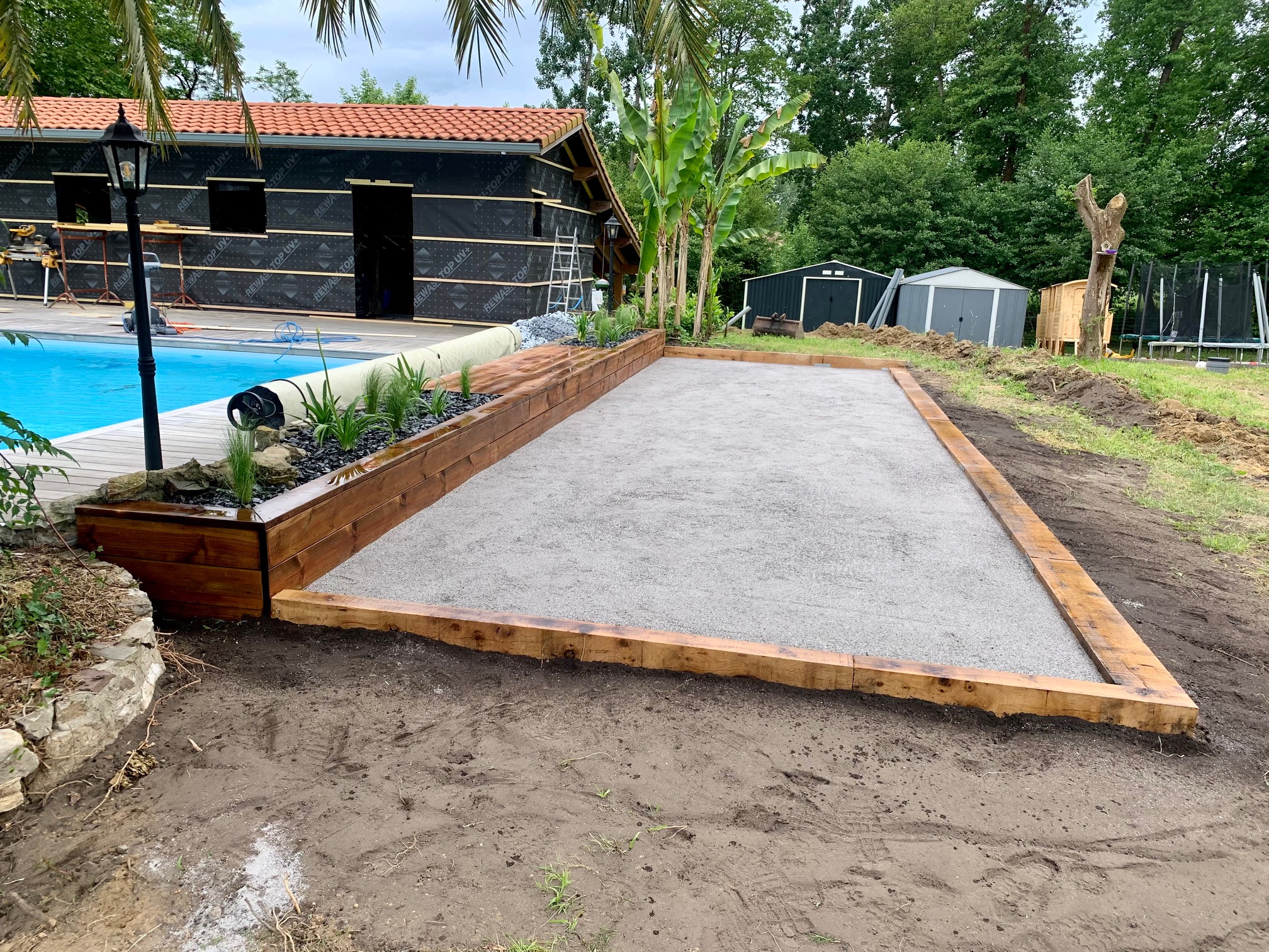 Aménagement d’un terrain de pétanque avec création de jardinière en bois à Peyrehorade